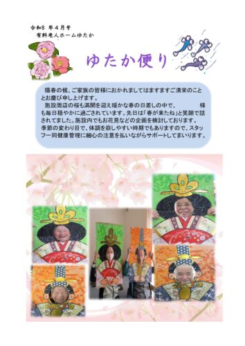 施設周辺の桜も満開を迎え暖かな春の日差しの中で、 様も毎日穏やかに過ごされています。